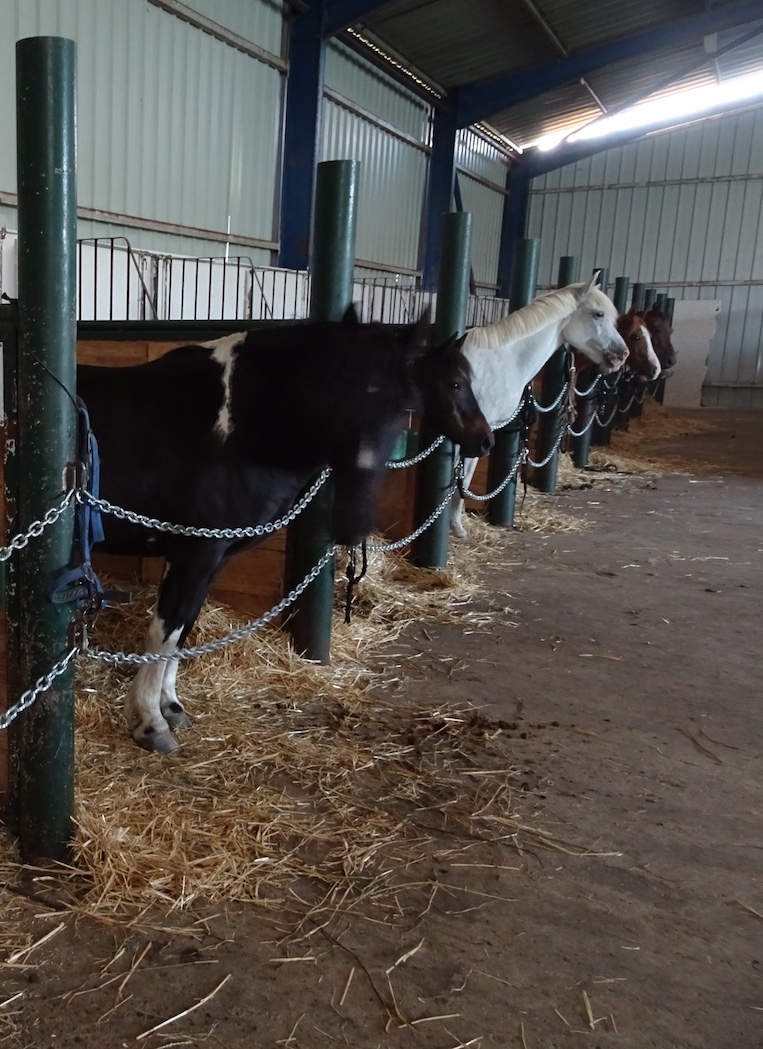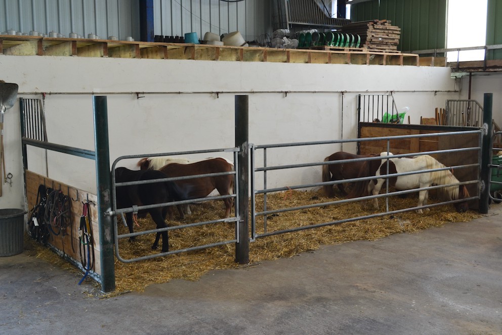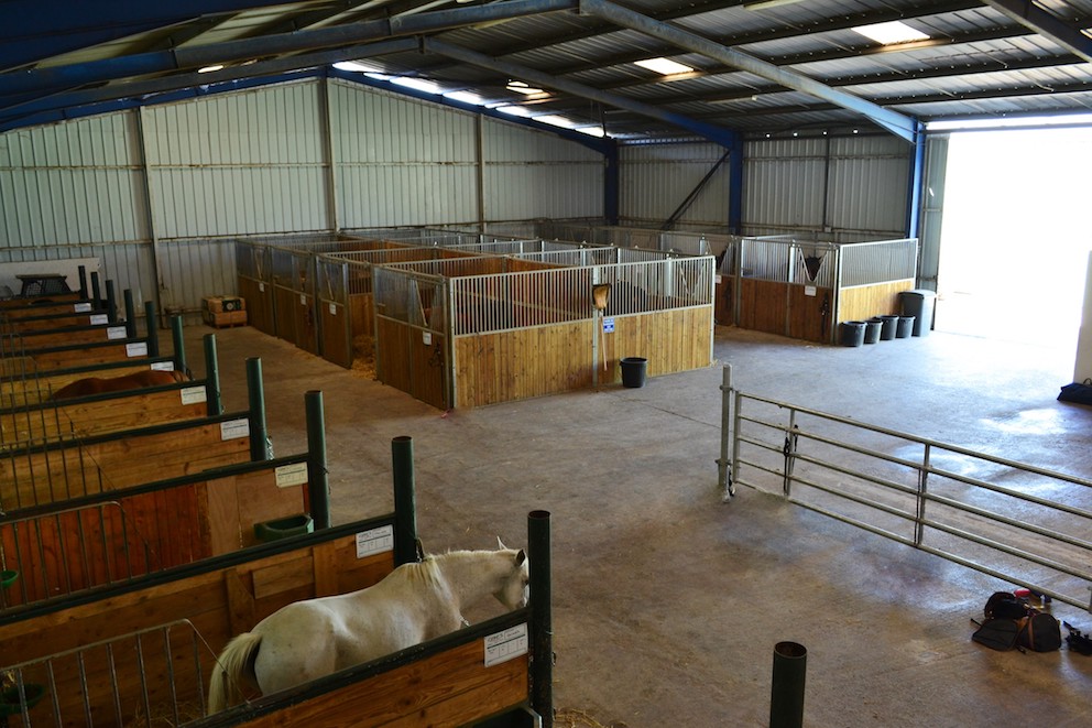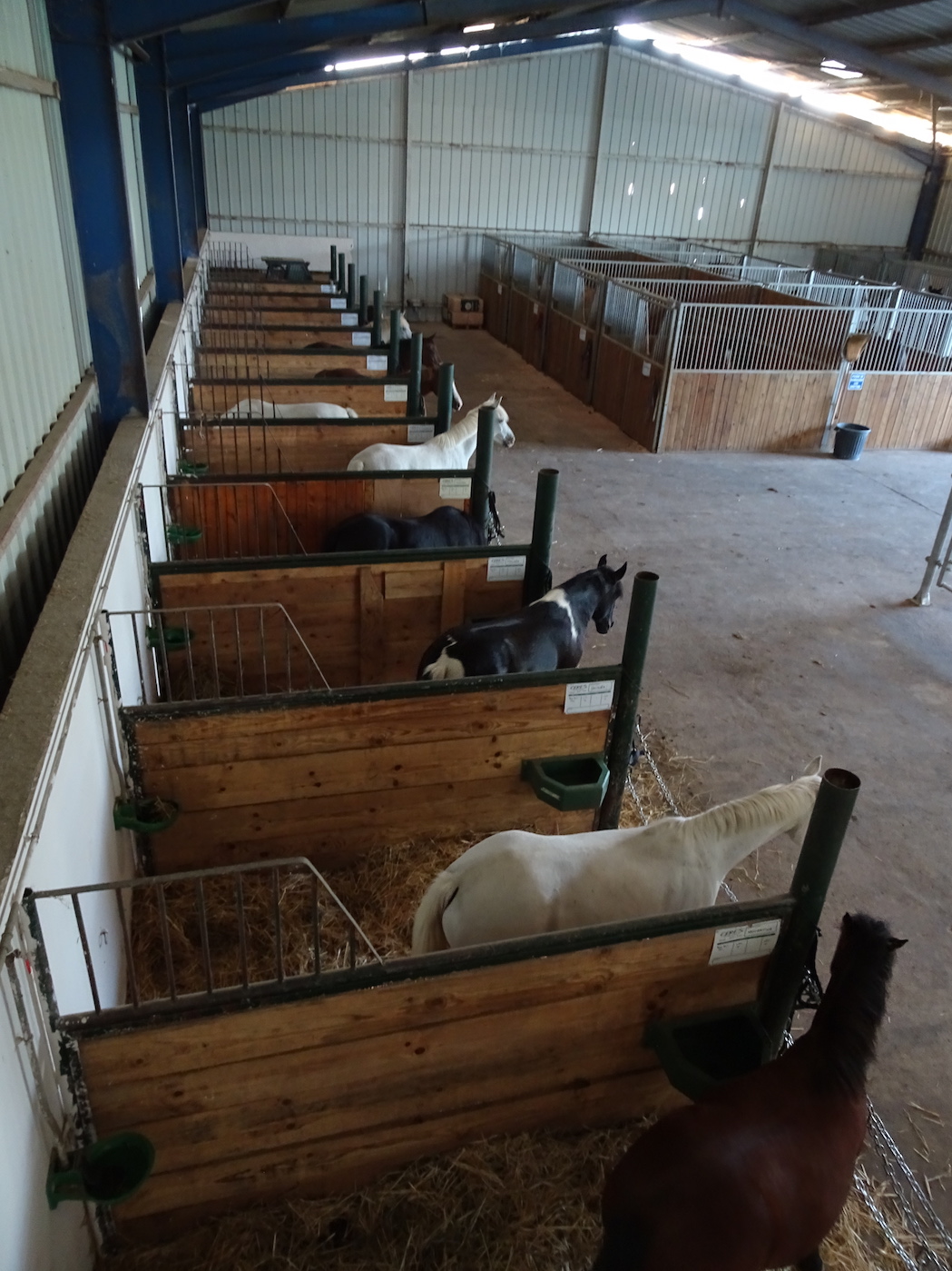 Grande écurie destinée au club avec une stabulation pour les shetlands, de nombreuses stalles pour les poneys et des boxes pour les double-poneys et chevaux.